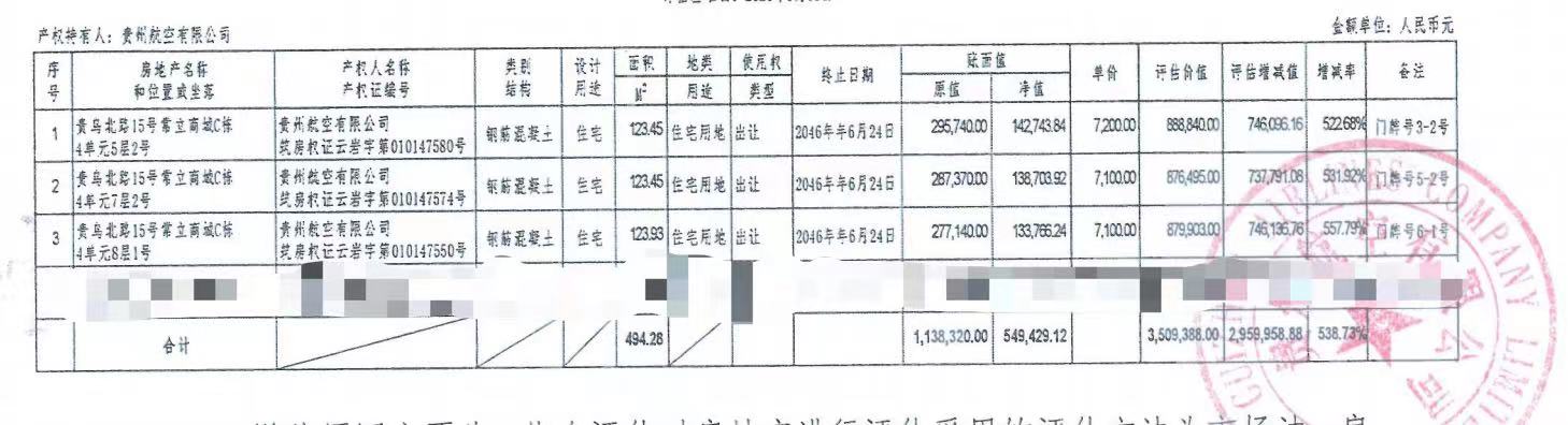 | 資產(chǎn)公告信息 | 資產(chǎn)描述 | 本次標的為貴州航空有限公司持有的貴州省貴陽(yáng)市貴烏北路15號常立商城三套住宅: 貴州省貴陽(yáng)市貴烏北路15號常立商城4單元5層2號,建筑面積123.45(㎡),總價(jià)888840(元); 貴州省貴陽(yáng)市貴烏北路15號常立商城4單元7層2號,建筑面積123.45(㎡),總價(jià)876495(元); 貴州省貴陽(yáng)市貴烏北路15號常立商城4單元8層1號,建筑面積123.93(㎡),總價(jià)879903(元); | |||||