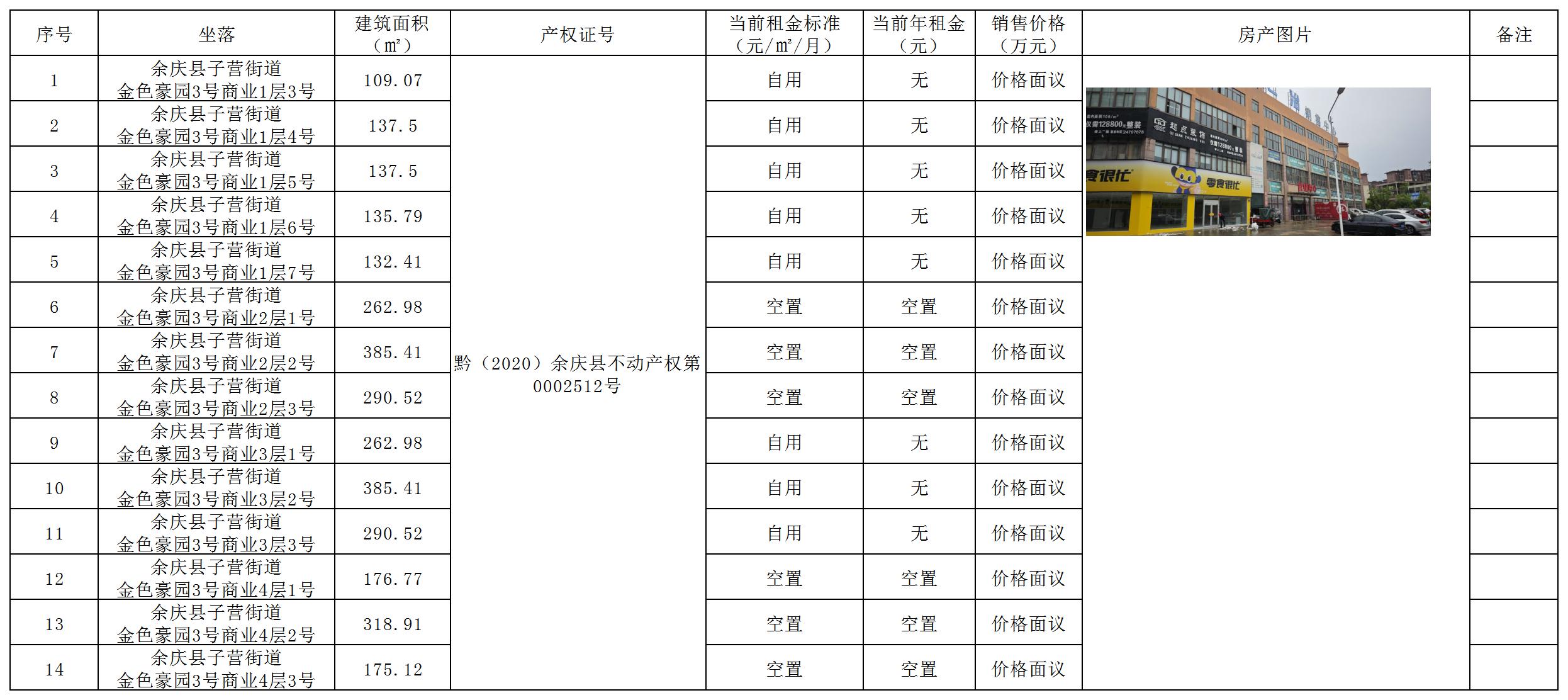 (預披露)七冶貴州置業(yè)余慶有限公司所持余慶縣臨街及社區商業(yè)用房資產(chǎn)整體出售