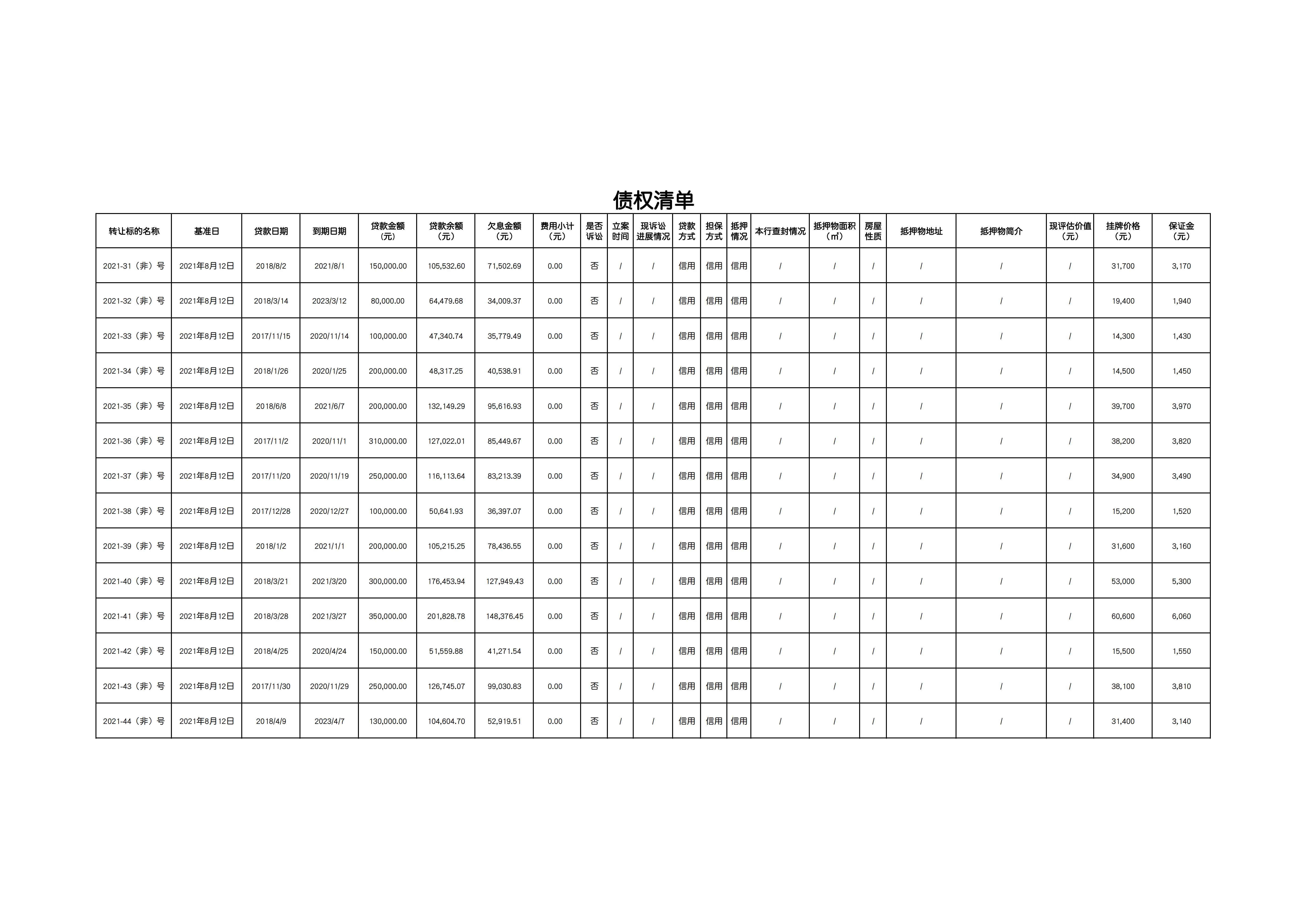 | 債權信息 | 債務(wù)人名稱(chēng) | 各筆債權簡(jiǎn)況詳見(jiàn)附件“債權清單” | ||||||